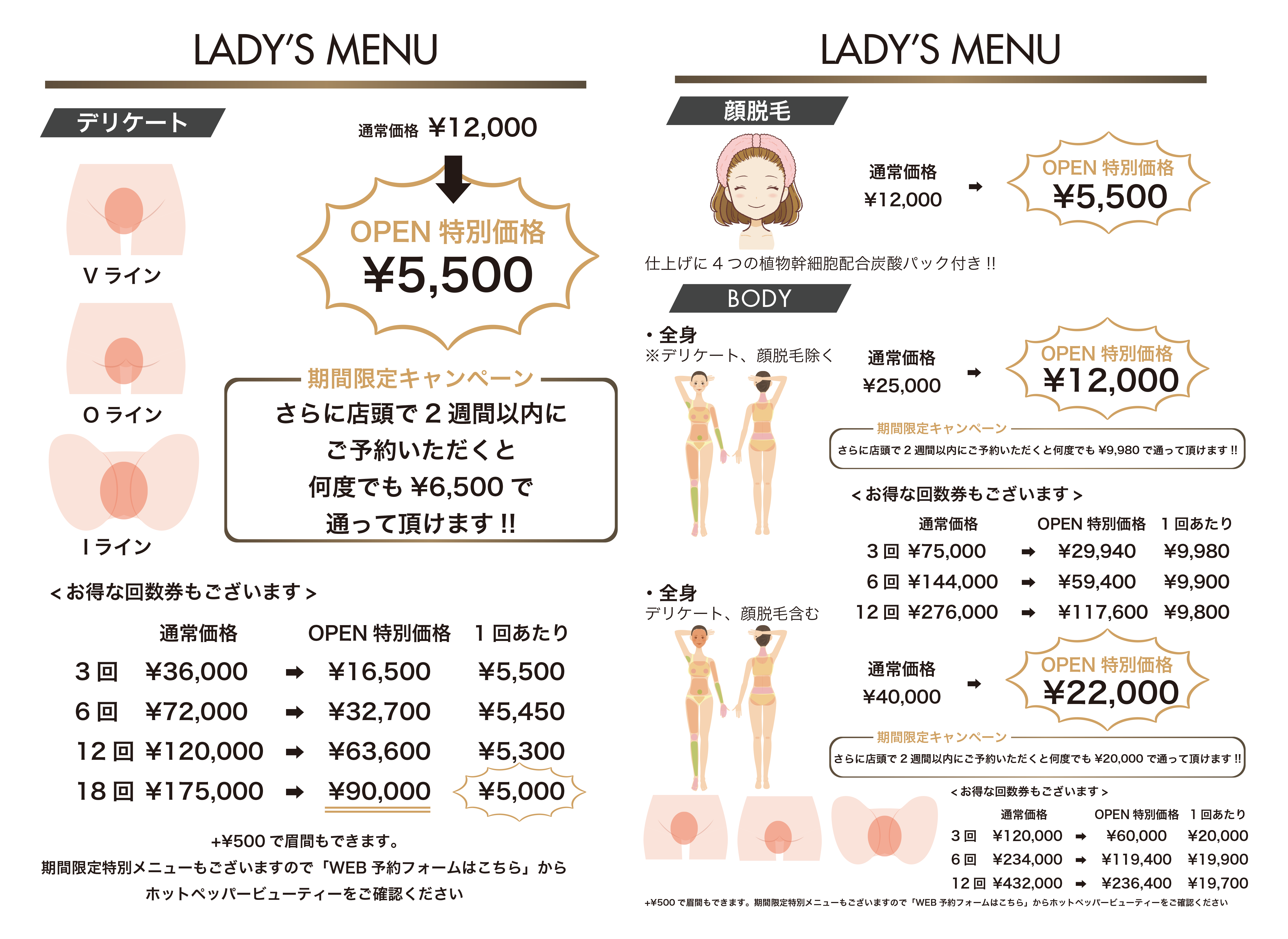 ・お手入れ箇所のシェービングは必ず行ったうえでご来店ください。
